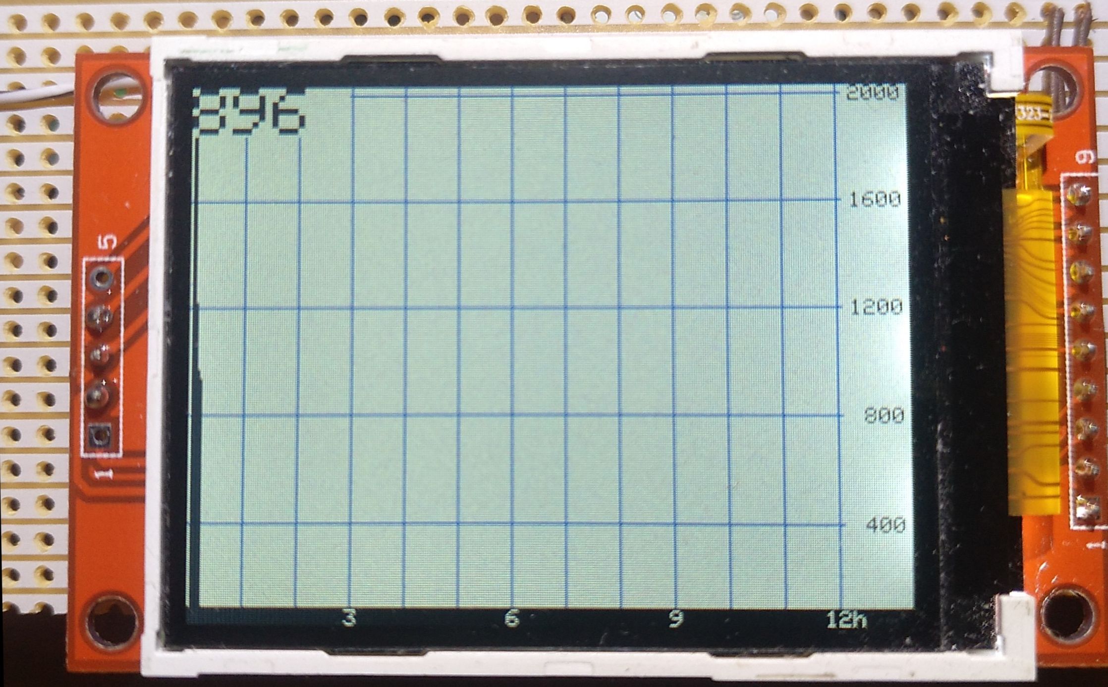 //Gráfica nivel de CO2 en 121h. Sensor MHZ19b y TFT 2.2''