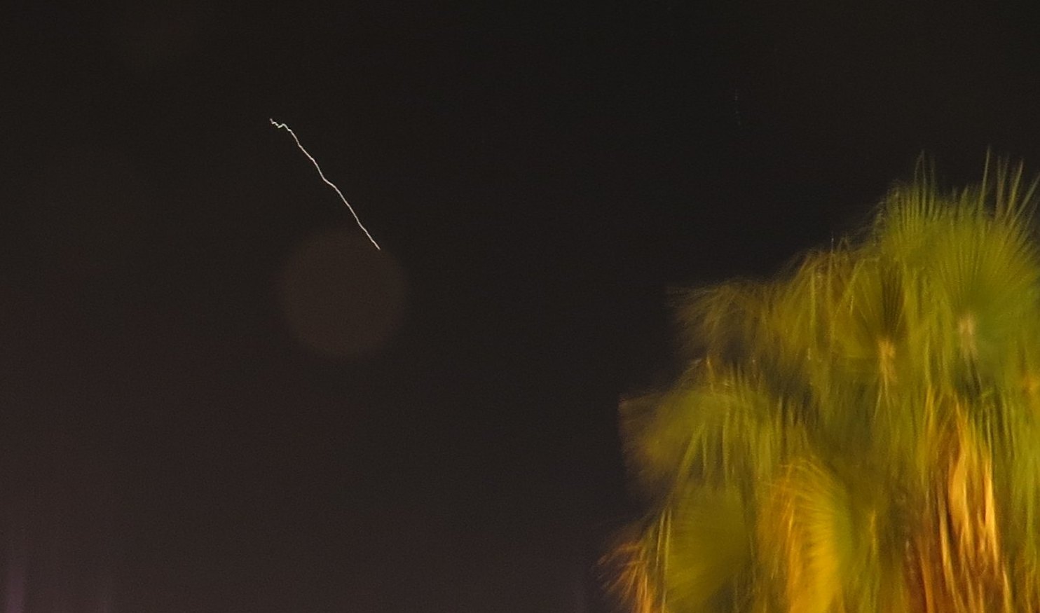Dos imágenes del paso de la ISS y parece que la conduce un borracho, pero no, el tonto fui yo al tomar las fotos desde un paso elevado peatonal con mucho tráfico.