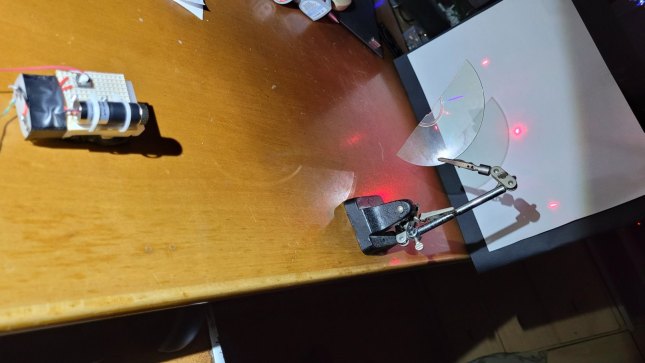 El experimento es muy sencillo, solo necesitamos un puntero laser, un CD quitándole la cubierta con cinta americana (duct tape), y un cristal cubierto de papel de aluminio con dos finas hendiduras.