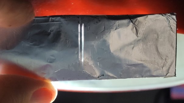 El cristal de un portaobjetos cubierto de aluminio y dos cortes con un cutter.