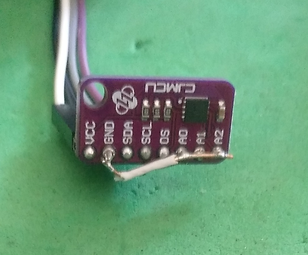 En primer lugar, recomendar soldar los pines A0, A1 y A2 a masa. Con esto fijamos la dirección I2C a 0x48 (o a cualquier otra), si no tendremos un funcionamiento inestable porque la dirección cambiará aleatoriamente.