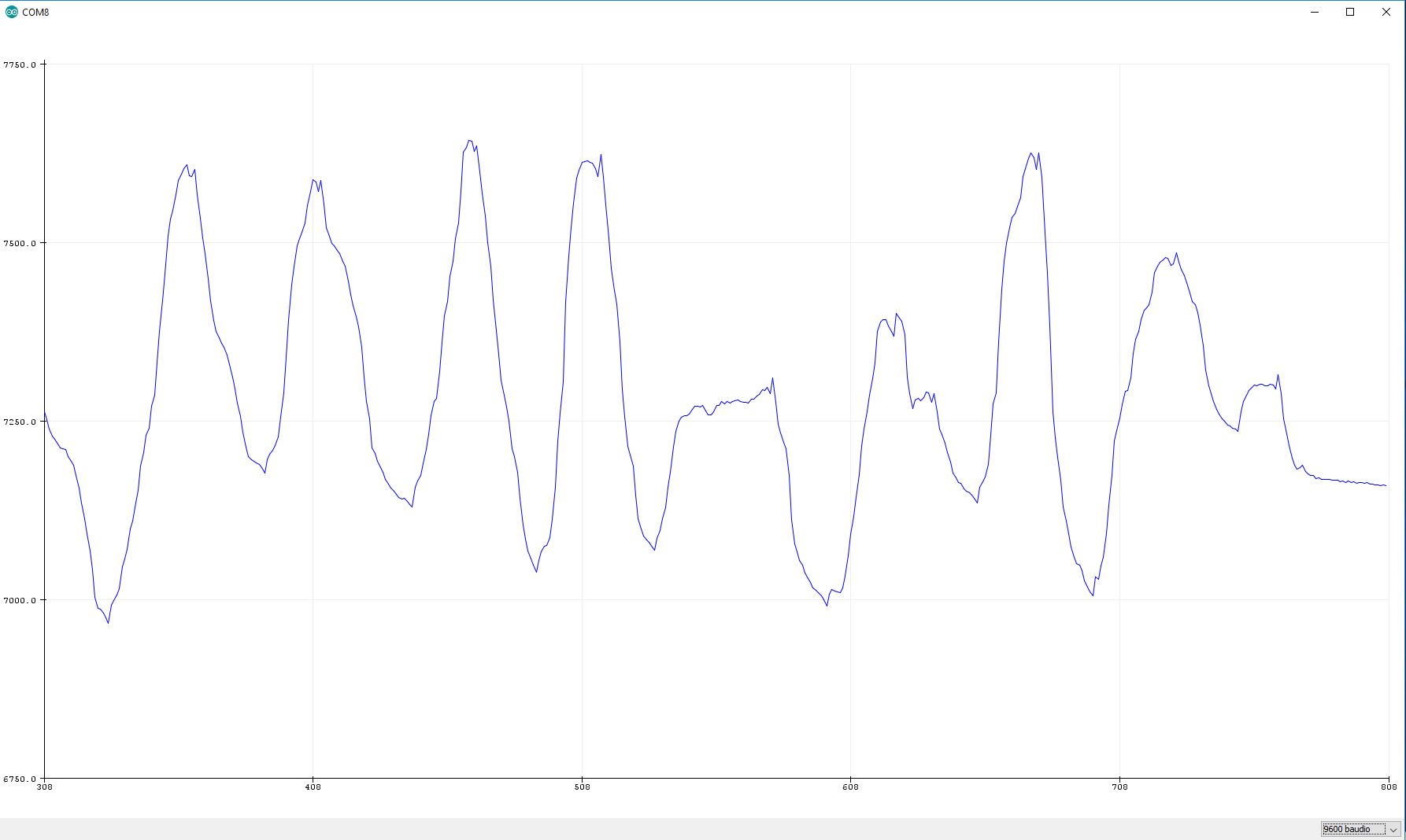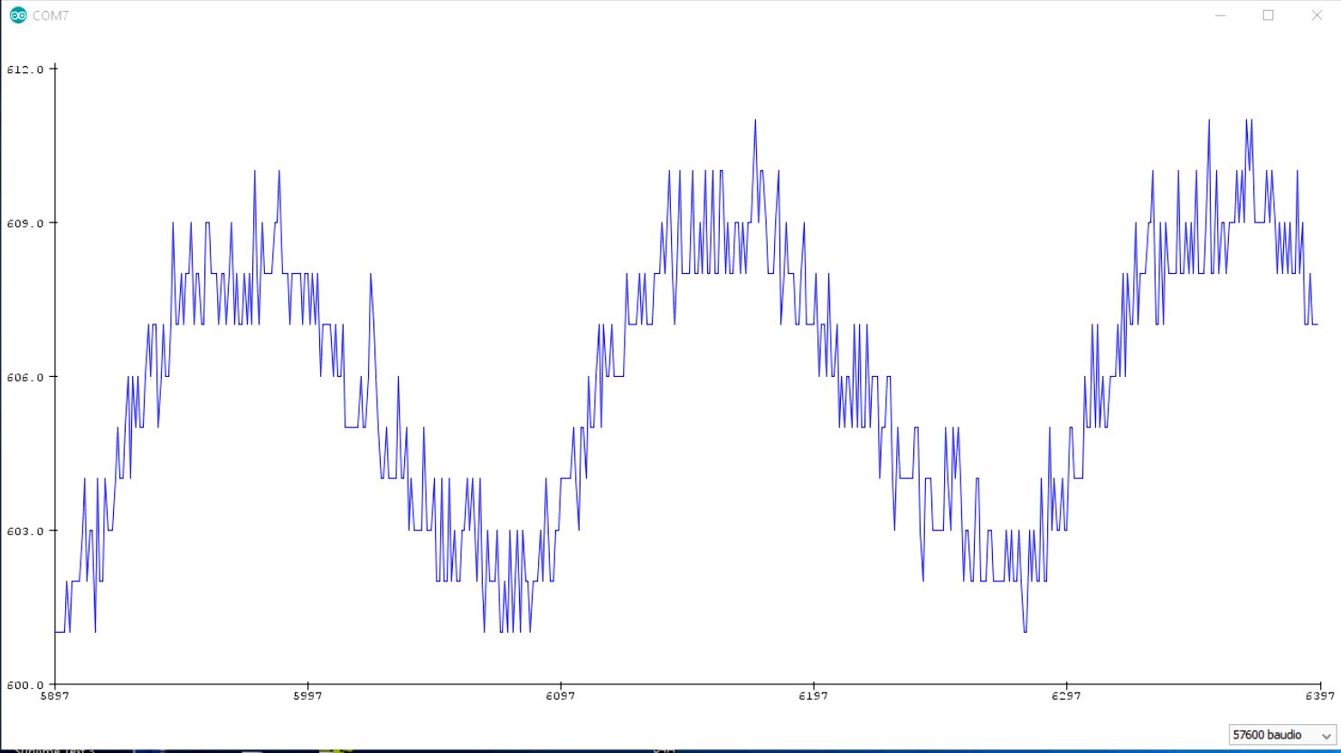 void loop() { // read the value from the sensor: sV=analogRead(sensorPin); Serial.println(sV); delay(20); }