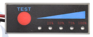 Para medir la carga de las baterías puede conectarse un voltímetro al Jack de carga o usar este indicador que solo marca durante unos segundos cuando lo pulsamos y podemos integrarlo en la carcasa pegado con cinta de doble cara. En reposo, el voltímetro solo consume 0,1mA