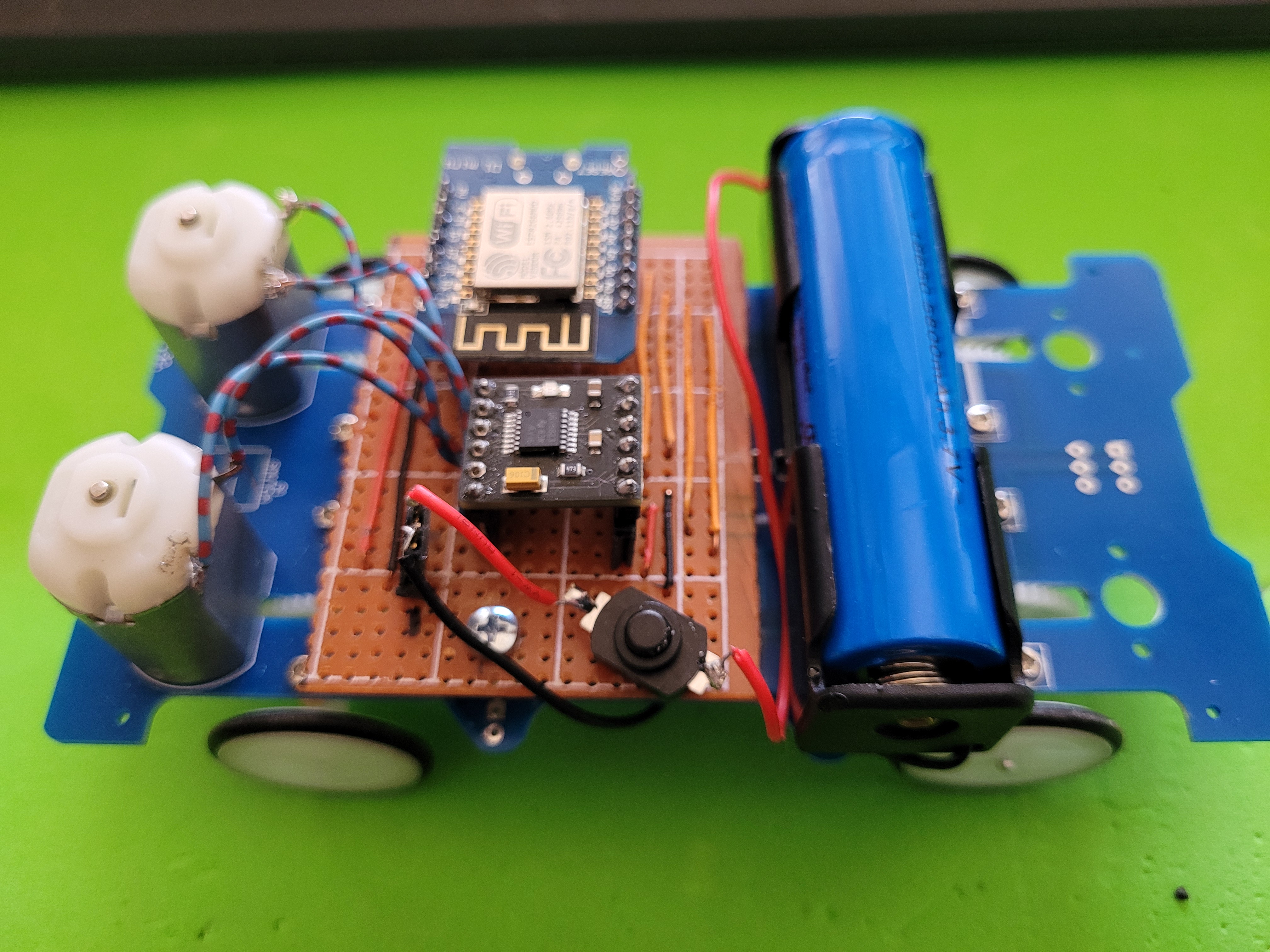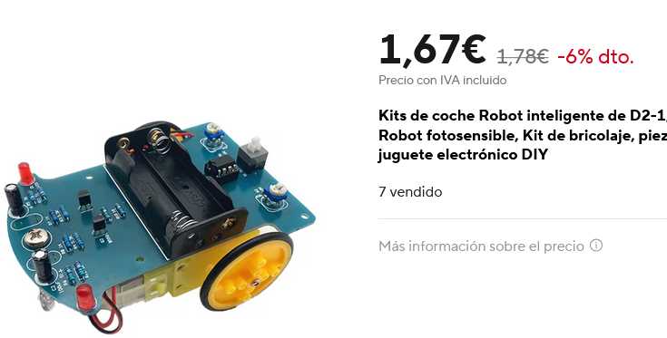Aprovechando el bajo precio (1,67€) del cochecito en formato de kit, pedí dos que uní por el centro. Solo uso la placa, motores (3v) y ruedas.
