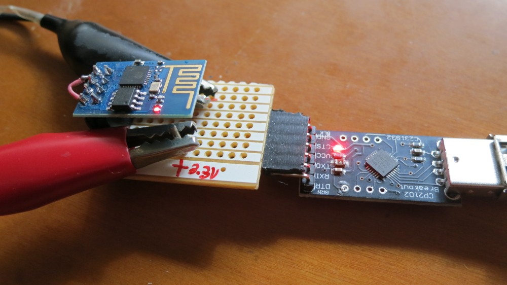 Aunque algunos USB/UART pueden proporcionar 3,3v, he preferido alimentar el ESP8266 con una fuente externa. Hasta ahora y tras múltiples pruebas, tanto con el USB/UART como con Arduinos a 5v he conectado los TX y RX sin ninguna protección y no ha pasado nada.