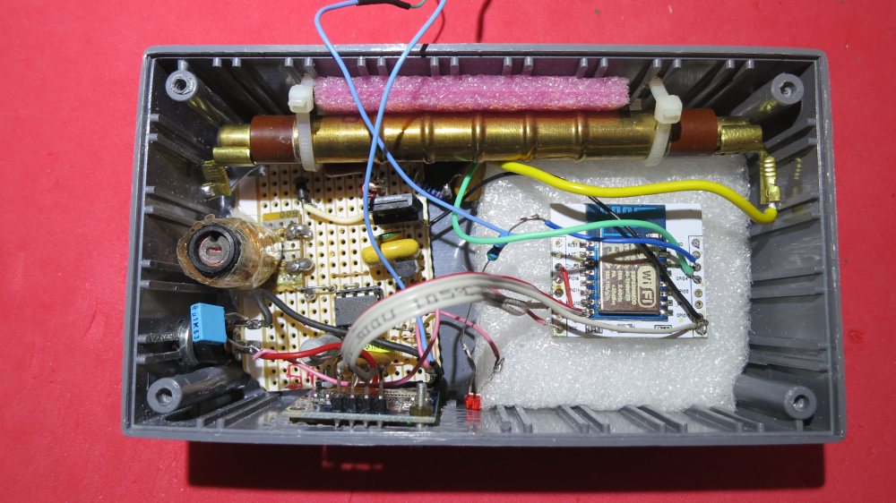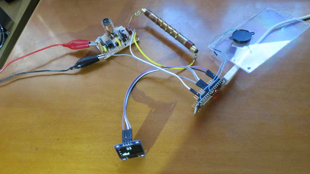 El sistema lo controla un ESP8266 que nos permite conexión Wifi y potencia de microprocesador. Está programado en LUA. Recibe los pulsos del tubo por el pin 2 (GPIO4) por medio de una interrupción, cuenta los que hay en cada minuto y los manda al programa en PHP para su visualización en Web. Al mismo tiempo va creando una gráfica en el display (128x64) que ocupa dos horas y va marcando el valor máximo en este periodo.