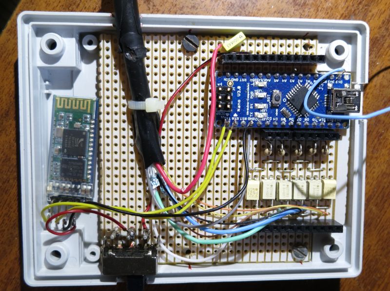 -Un microprocesador en una placa Arduino nano. -Seis optoacopladores. -Un módulo Bluetooth.
