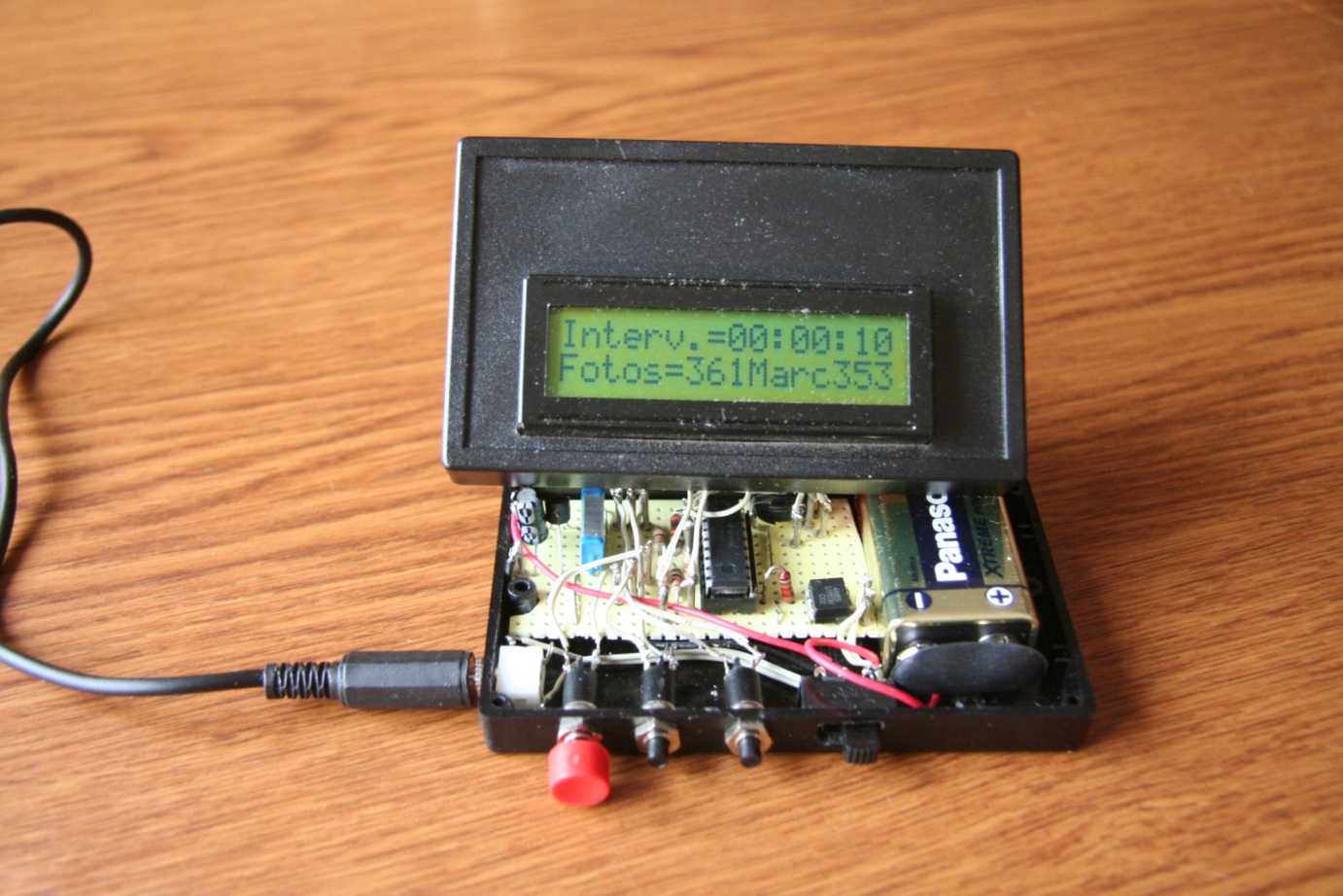 Sistema con microprocesador para realizar fotografías a intervalos desde un segundo a 24 horas con programación del número de disparos a realizar.