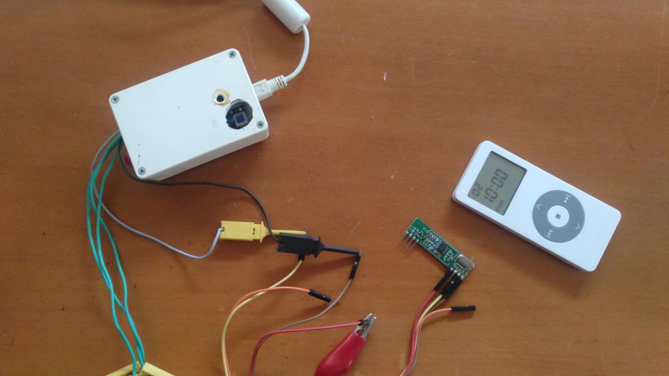 Lo siguiente fue conectar la salida de un módulo receptor de 433Mhz al osciloscopio donde podía verse perfectamente la trama pero lógicamente con muy difícil lectura de los tiempos de cada cambio lógico. Era el momento de desempolvar un analizador lógico que monté en el 2015 por menos de 5€. Actualmente se vende ya montado por ese precio y con solfware gratuito PulseView.