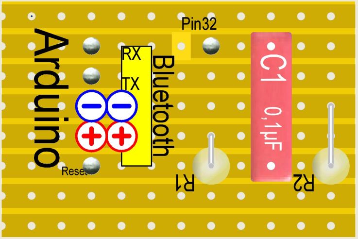 Es necesario hacer un pequeño circuito para que el pin 32 del HC-05 pueda mandar correctamente un pulso negativo al pin reset del Arduino.