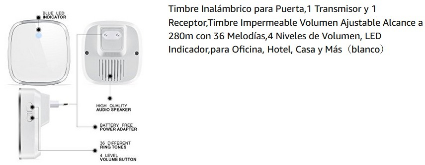 Para no tener que cablear desde el semisótano-garaje hasta la casa, he utilizado un timbre inalámbrico que vale poco más de 10 Euros.