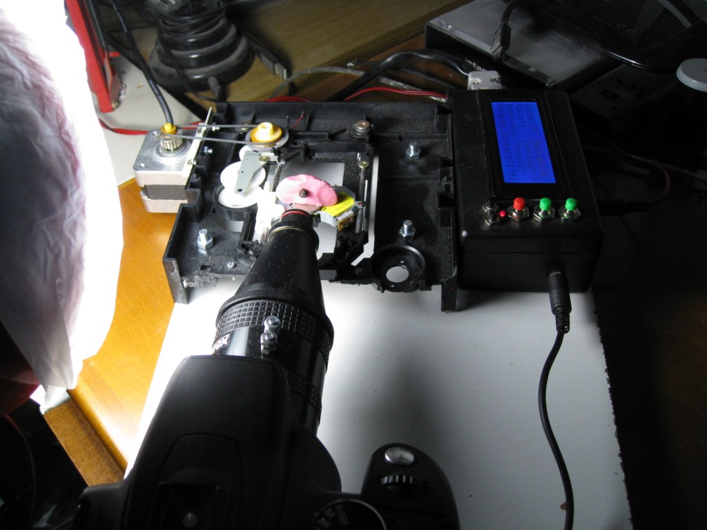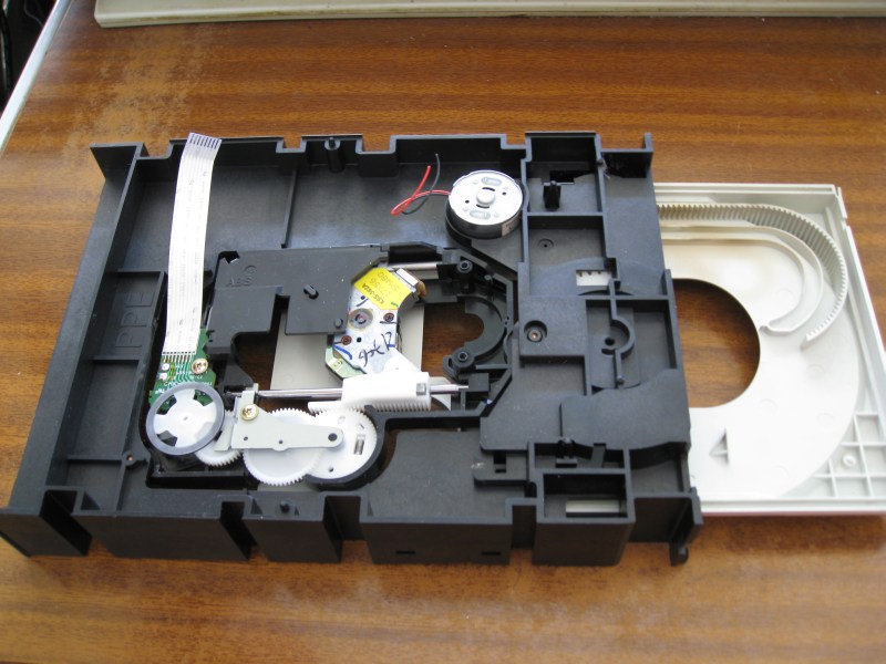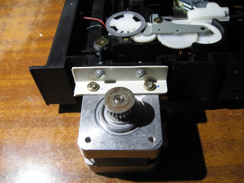 No es original, pero es lo mas barato y a mano que tenia. El mecanismo es de un CDRom de desecho y el motor recuperado de una impresora matricial.